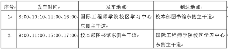 国际工程师学院校区往返校本部的周末学生班车自20235月份开通以来,很大程度上解决了学生周末往返两校区的交通问题,得到了大部分学生的点赞和认可。在新一轮班车协议签订过程中,校区管委会继续坚持以生为本原则,广泛采纳学生日常提出的意见建议,对班车运行部分内容进行了相应的调整和改进,不断提升学生的满意度。具体通知如下: