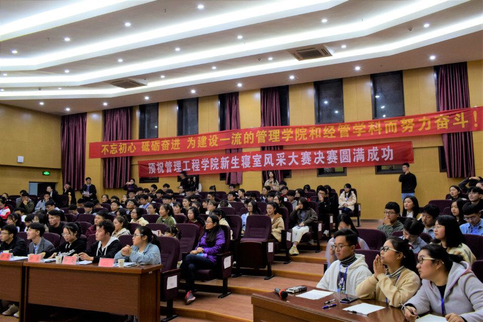 为推进寝室文化建设,创造良好的生活和学习环境,管理工程学院于11月10号晚7点在C座七楼报告厅举办了“2018级新生寝室风采大赛”决赛。来自机械、纺服、生化、数理、建工等学院的生活部、权益部负责人担任比赛评委。大一新生、学院组织员朱文明老师观看了比赛。