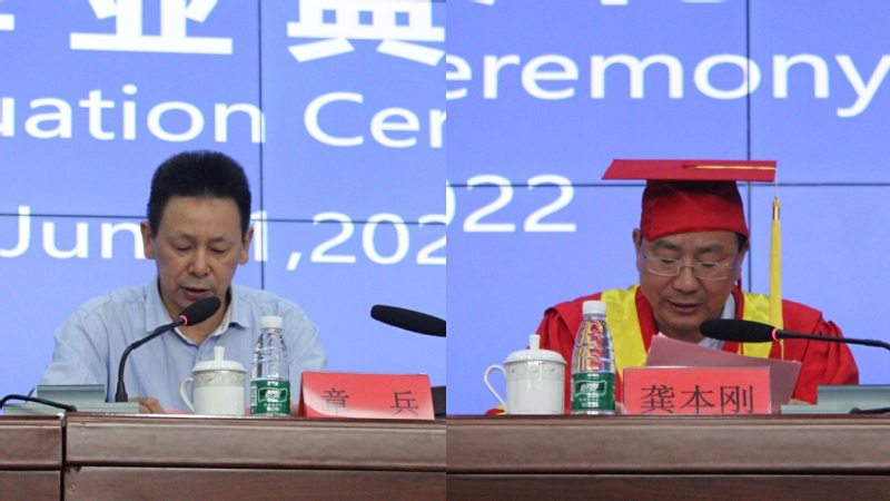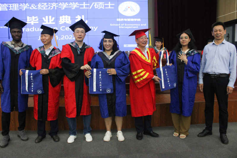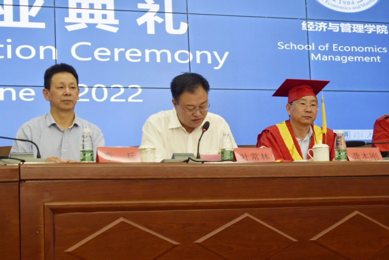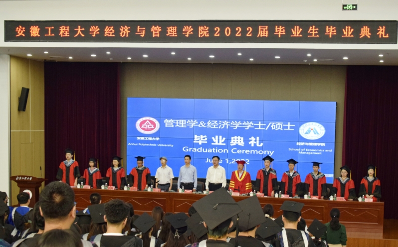 毕业骊歌起,梦想再起航。61日上午8:30,经济与管理学院在图书馆五楼会议室为2022届毕业生隆重举行毕业典礼,副校长叶常林教授、 国际交流与合作处(国际教育学院)副处长(副院长)朱铁军教授、学院党政领导、各系负责人、专业负责人、教师代表、毕业班辅导员、2022届本科毕业生、研究生毕业生和2022届留学硕士毕业生参加了典礼。典礼由学院党委副书记程繁主持。毕业典礼在庄严的国歌声中拉开序幕。