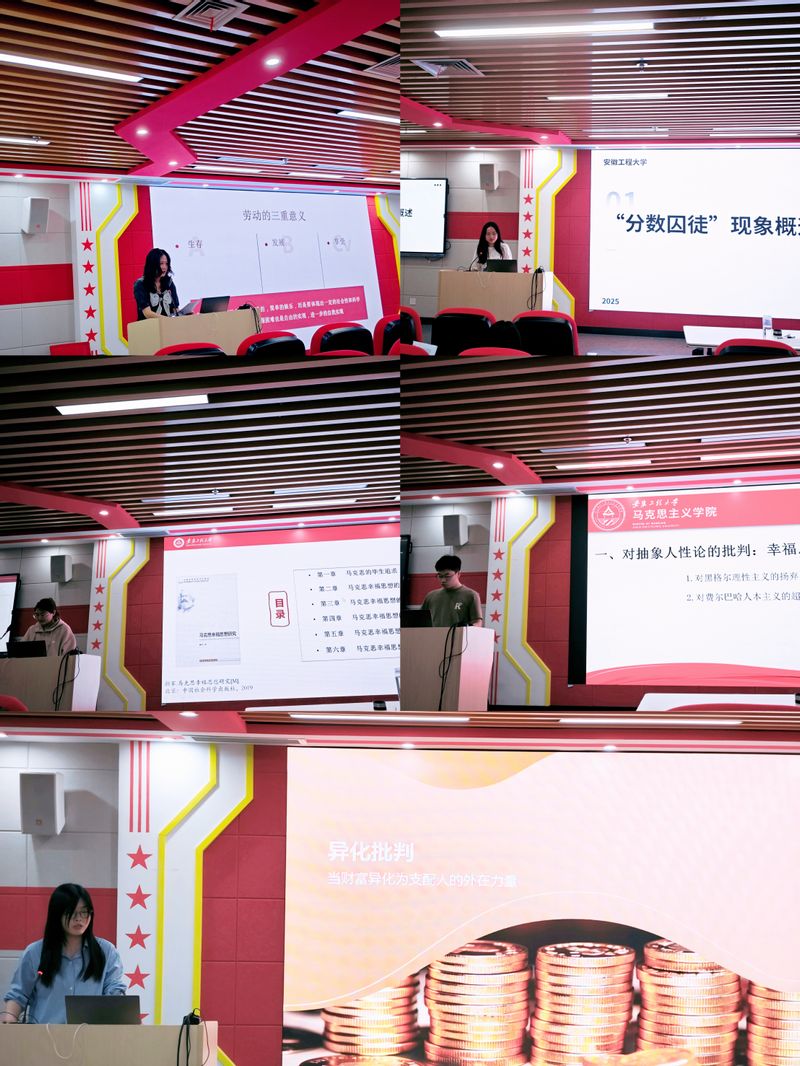 在主题分享环节,学院研究生胡旭东、何银璐、汪柔、马雨璇、王代情、付龙雪、梁欣妍7位同学就马克思主义经典著作中关于幸福思想的论述,结合现实生活,对幸福从何而来、马克思幸福思想中的财富观、马克思幸福思想的时代解读与价值等进行分享。同学们通过文本细读与现实观照相结合的方式,既阐释了马克思主义幸福观的核心要义,又结合社会热点进行了创新性解读。