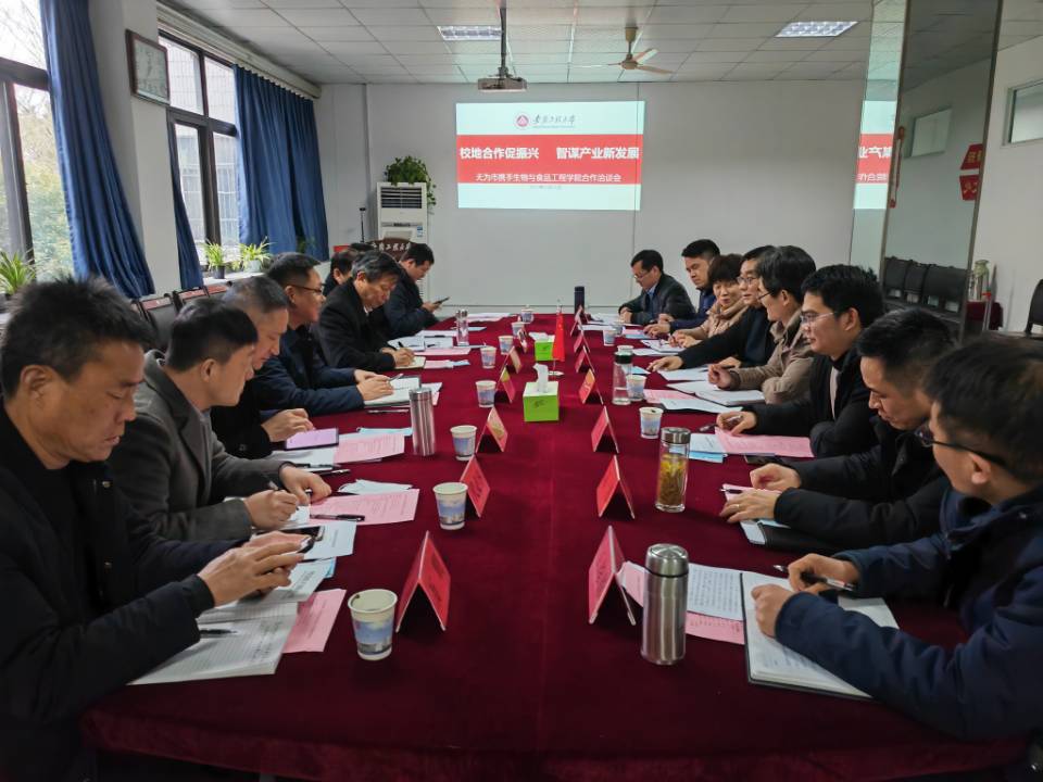 为落实“芜湖市绿色食品产业研究院”的共建工作,2月20日,无为市常委、组织部部长陈兆强一行来生物与食品工程学院进行调研洽谈。校党委常委、副校长郑健,校科技处、人事处相关负责人、学院全体党政领导出席了调研洽谈会。会议由学院院长薛正莲主持。