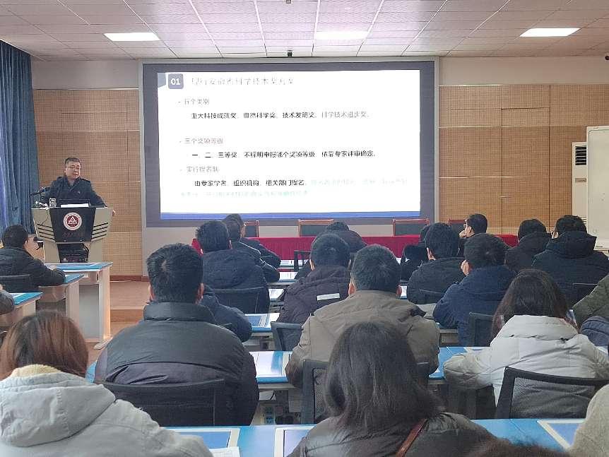 219日下午,生物与食品工程学院在虚拟仿真中心举办2024年度安徽省科学技术奖申报辅导报告会,我校科技处负责人王宗乾应邀作辅导报告,生物与食品工程学院院长葛飞,相关学院院长、教师共计70余人参会。报告会由葛飞主持。
