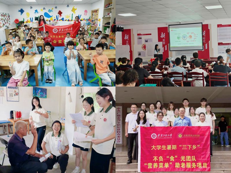 围绕食品安全与社区健康,学院多个实践团队开展了一系列贴近民生、服务群众的科普与调研活动。“乡村振兴实践营”不负“食”光社会实践团队走进广德市誓节镇养老服务中心,发挥食品科学与工程专业知识优势,以“营养菜单助老服务”为主题开展暑期“三下乡”社会实践活动探索乡村振兴新路径。“皖安食药研宣团”走进幼儿园,通过趣味互动和科学实验,向幼儿及教师普及食品安全知识,筑牢健康成长防线。“食药双安研宣团”团队联合社区,针对老年人开展合理用药与健康管理宣讲,提升基层健康意识。“食光筑绿青年队”,携手“三角梅”身心守护志愿服务团队深入芜湖市社区,针对厨余垃圾资源化利用的难题,以“精准调研+专业宣讲”的双轨并行策略,探索社区环保的新航道。同学们在服务中锤炼专业能力,也用实际行动守护“一老一幼”的健康。