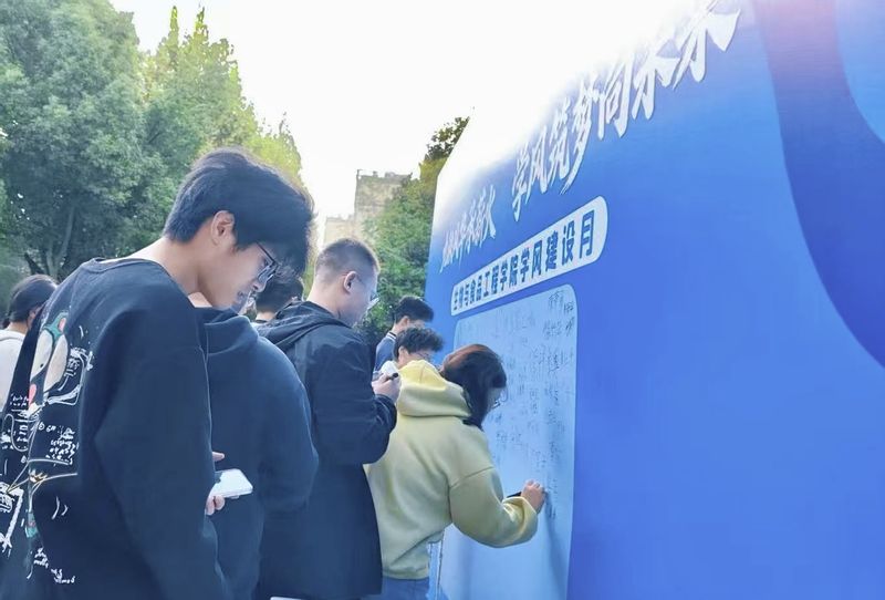 活动期间,生物与医药专业2025级研究生刘鑫鑫结合本校升学经历,从复习方法与心态调整两方面分享了备考心得。院学生会主席柳梳丽代表全体本科生宣读了“共建优良学风”倡议书。来自各年级的200余名师生代表共同参与活动,并在学风建设承诺签名墙上郑重签名,表达了积极投身优良学风建设的共同决心。